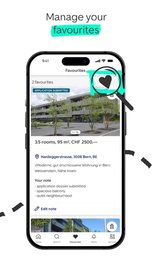 Save interesting apartments and houses in your wish list.