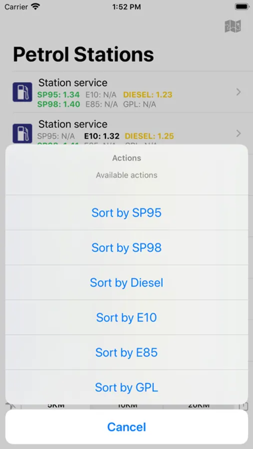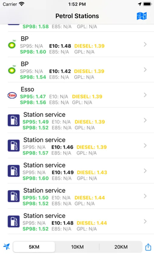 Trier la liste des stations service par prix de l'essence, diesel ou gpl et voyez sur la carte la station service la plus proche.