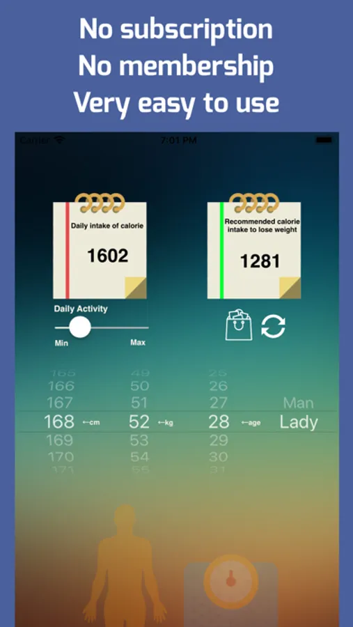 At this page normal calorie limit and the calorie limit that needed to loss weight is shown according to your selected profile.