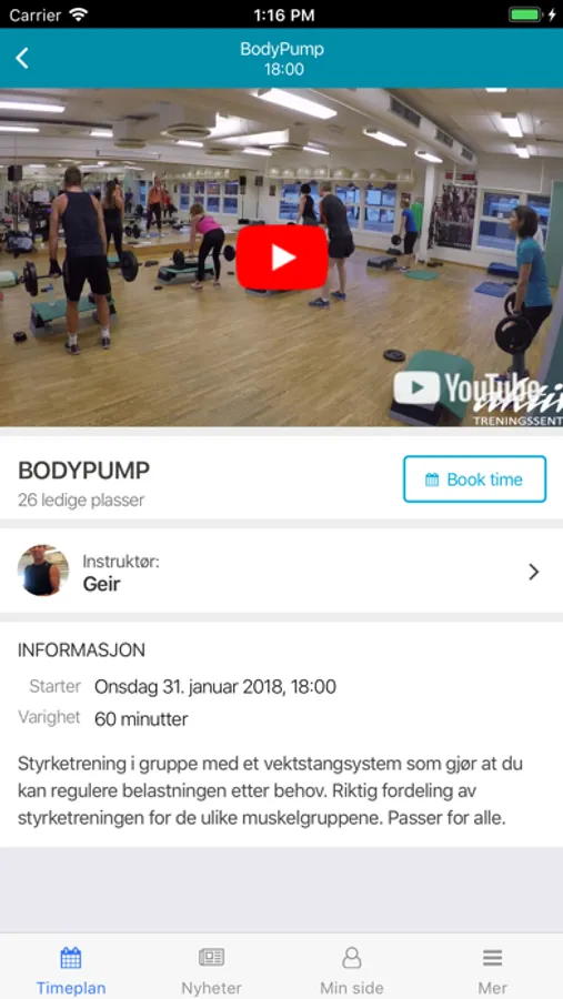 Bruk telefonen til å booke, kansellere eller sette deg på venteliste til gruppetimer hos Aktiv Treningssenter.