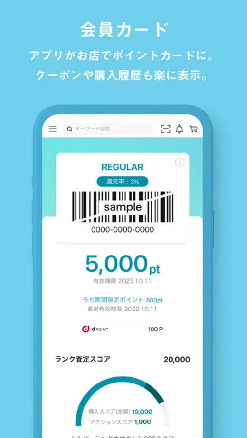 オンラインショッピング機能とお店で使える会員カードをひとつに、もっと便利にお買いもの。
