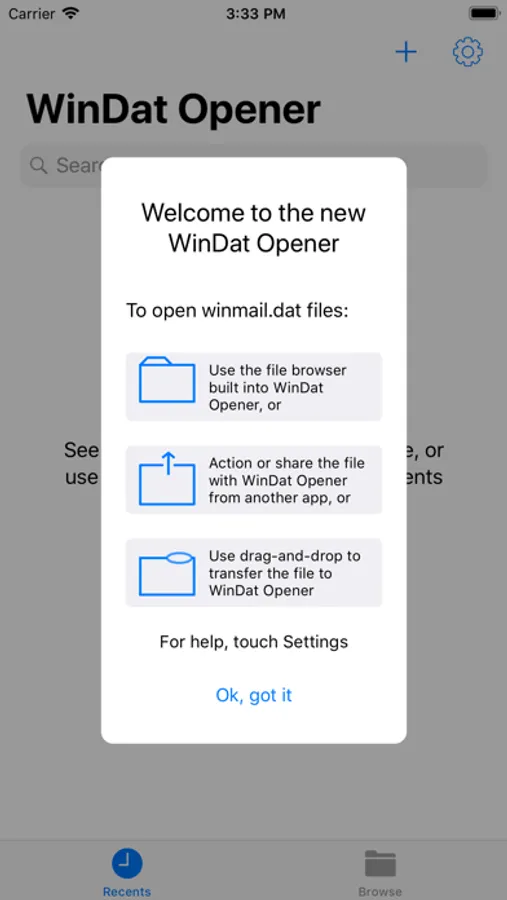 · File manager integration; WinDat Opener will open and save files to and from any location that file manger supported, e.g., iCloud and DropBox