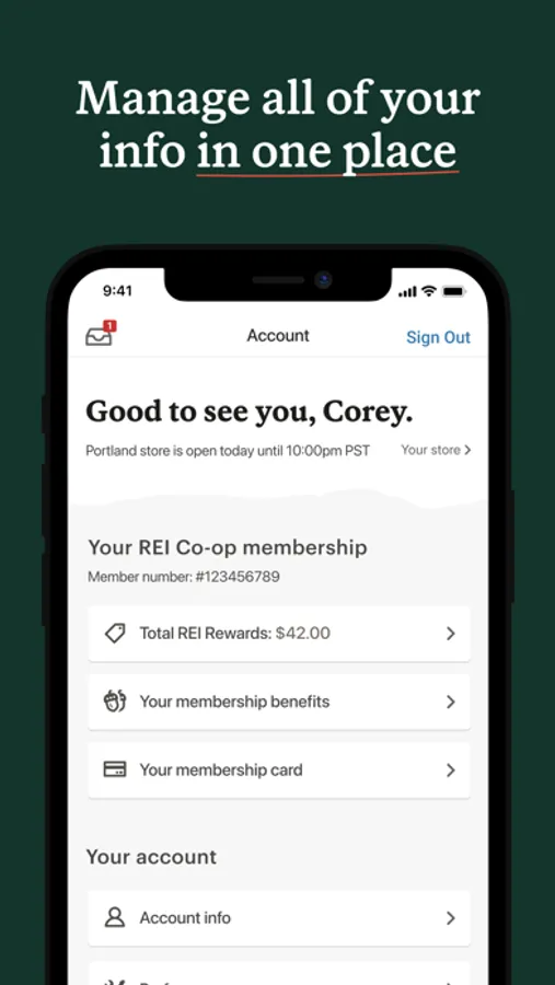 – CHECK OUT EFFICIENTLY: Store your REI gift cards and membership number—even add it to your Apple Wallet.