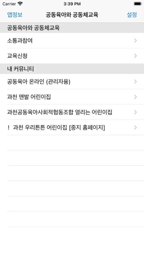 - 일부 어린이집 커뮤니티에서 오류가 발생할 수 있습니다. 혹, 메뉴가 안 나온다던가 하는 문제가 발생하는 분은 아래 "공동육아 지원"의 블로그에 댓글 혹은 아래 리뷰에 자세한 글을 남겨주시면 확인 후 수정토록 하겠습니다.