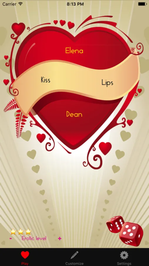Sex dice is a dice game intended to heighten the atmosphere and promote foreplay. Add player names, chose their sex orientation and play... with your girlfriend or at a party, this app gives you a chance to play with many people at once, similar to playing 'spin the bottle' game :)