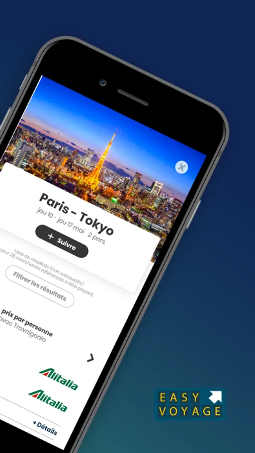 Utilisez les filtres Easyvoyage pour trouver exactement le vol ou le trajet qui vous correspond : horaires, ville de départ et destination, choix des aéroports et des compagnies, vols directs ou avec escales etc. Une fois votre recherche effectuée, enregistrez-la et recevez des alertes lors de variations de prix. Ne ratez aucune promo et aucun billet au meilleur prix !