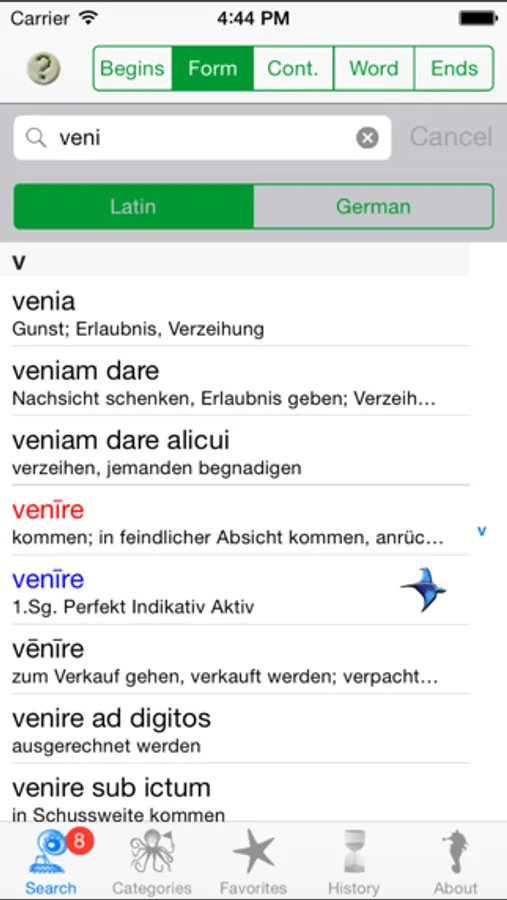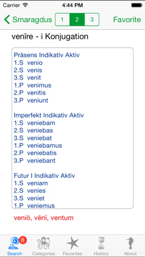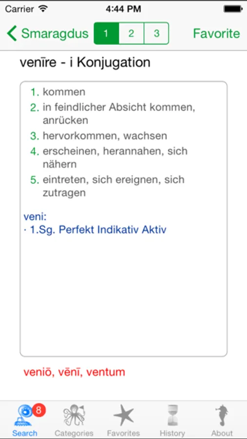 Smaragdus is a Latin-German dictionary with more than 46,000 Latin entries and nearly 130,000 German translations.