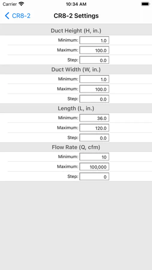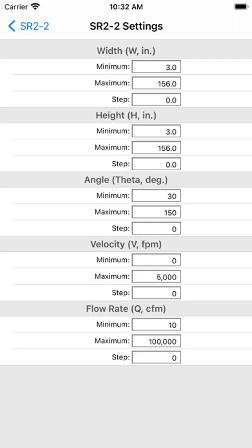 3. You can easily change the minimum and maximum allowable values for all input parameters.