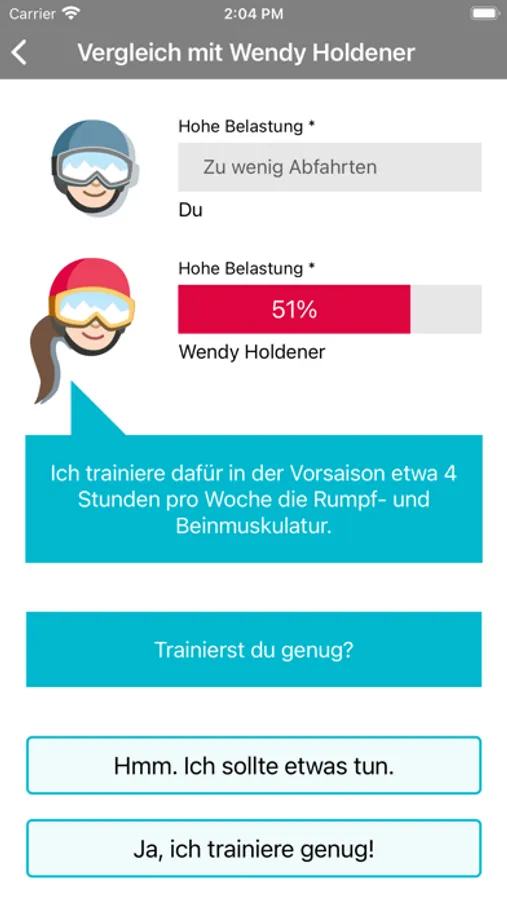 • Vergleich der Belastungswerte mit Wendy Holdener