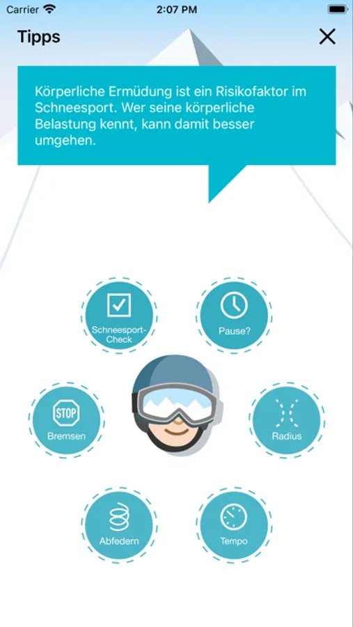 Die App gibt auch konkrete Tipps, wie Sie Ihre Kondition verbessern und Ihre körperliche Belastung verringern können. Beides senkt letztlich Ihr persönliches Unfallrisiko.