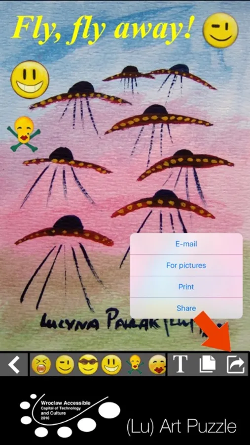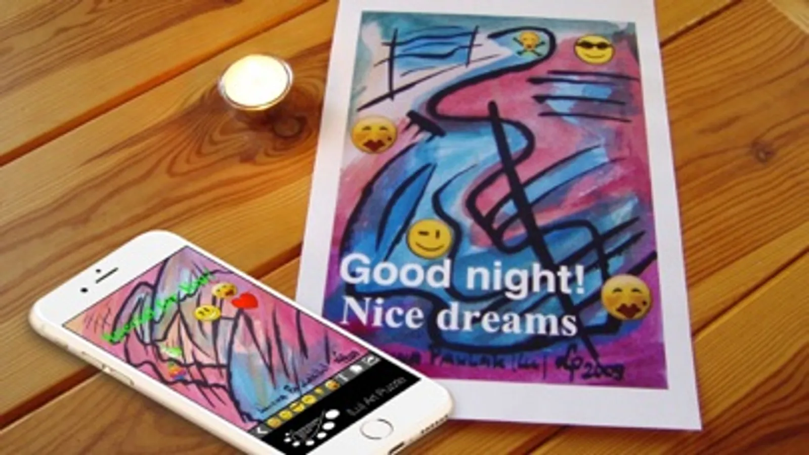 ● Possibility to decorate the pictures with hand painted emoticons (smileys), hearts and inscriptions.