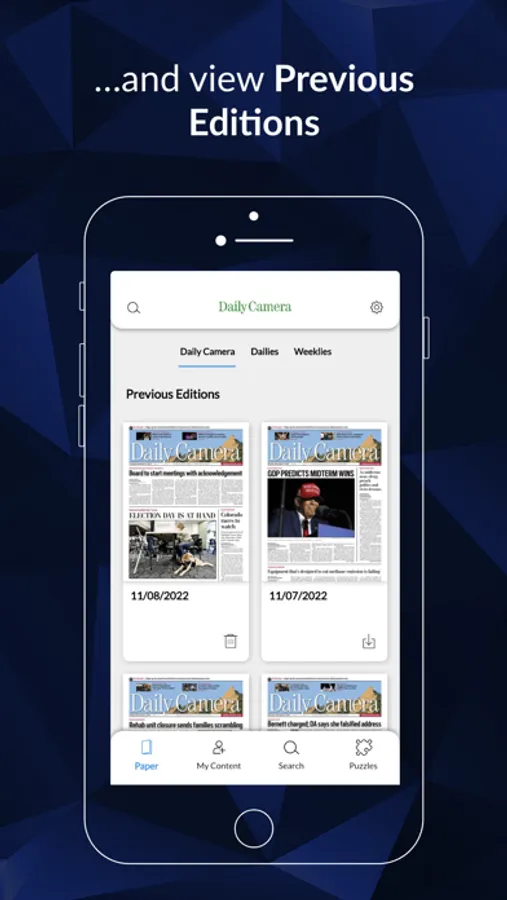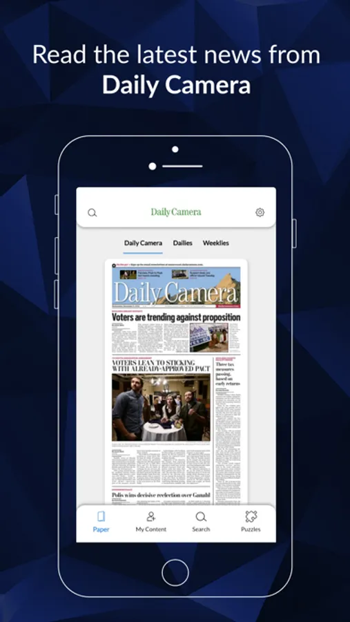 This app is specifically for Daily Camera e-edition readers. It was designed for ease of use for our e-edition readers. You can view a digital version of the Camera every day and even view old editions.