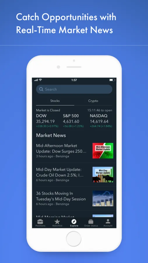 Sign-up for a brokerage account & invest in a wide selection of asset types, including stocks/ETFs, options, and cryptocurrencies.