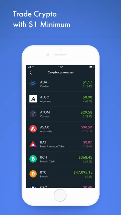 $1 minimum to buy or sell cryptocurrency.