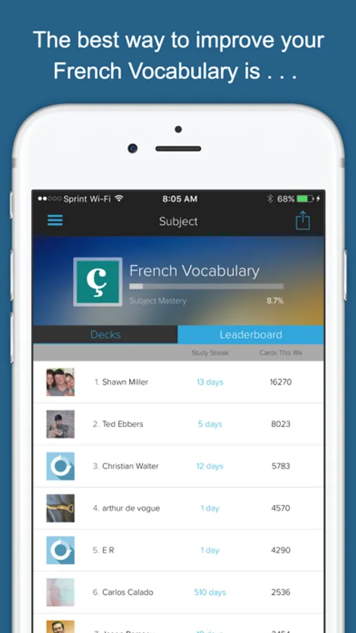 • Nearly 3,000 AUDIO flashcards composed of the most important words in French– carefully ordered from most foundational to most complex (unlike other vocab apps, which simply dump words into “themes” with no sense of progression)