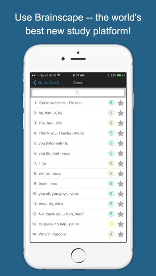Drill yourself on the most common vocabulary words from your French courses and from everyday French conversation. Boost your vocab FASTER than with any other app on iTunes. Applying the latest in cognitive science, Brainscape introduces vocabulary words in order from most foundational to most complex, and repeats them in a pattern that is just right for YOUR brain.