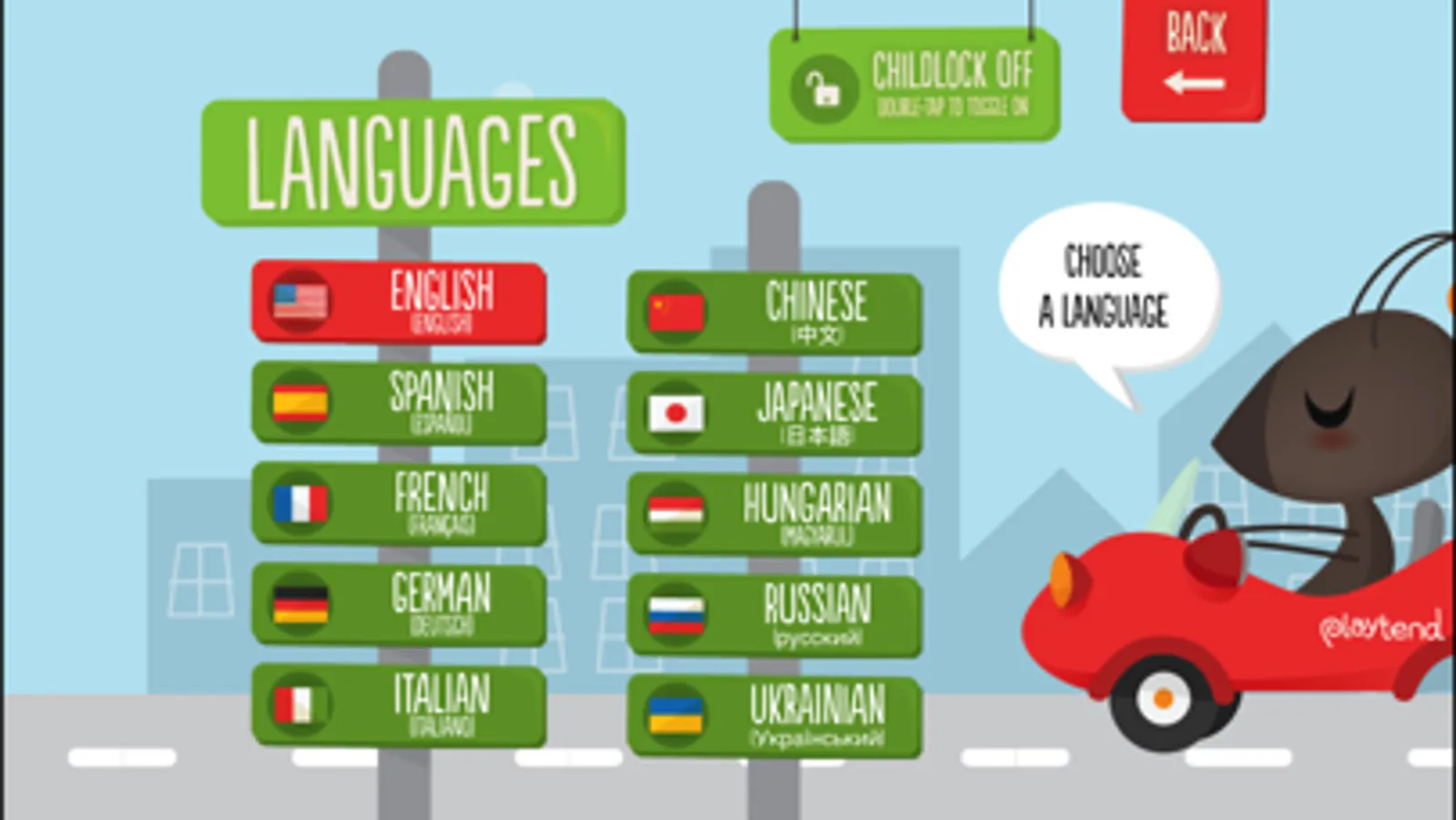 This app features adorable ants that zip around in their cars, while teaching kids the basics of counting in 10 languages.