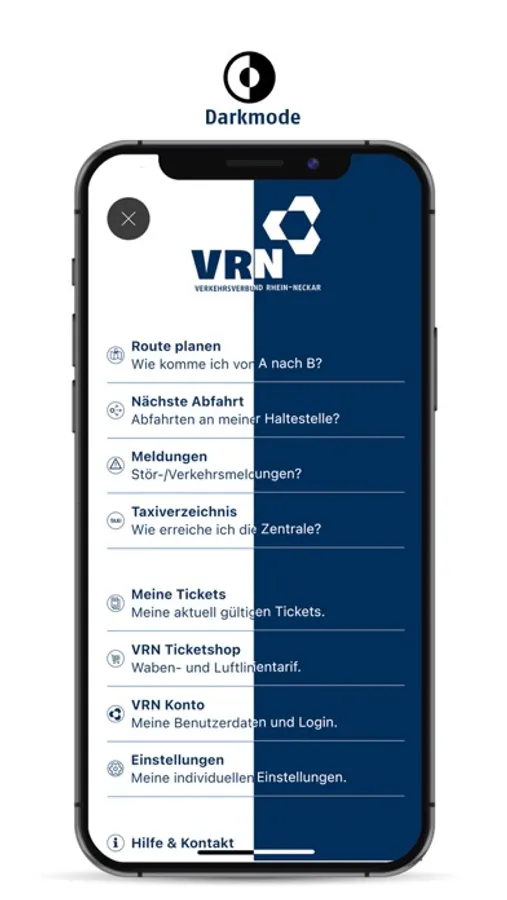 Customize your app surface and enable indivudal functionality settings (as tab bar, darkmode, language, view typ, destination or starting point input, walking speed, exclusion of certain mobility offers…)