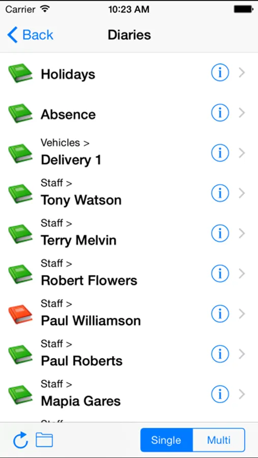 The MyOffice app gives MyOffice users access to calendars, contacts, emails, and tasks on the iPhone, both whilst connected to the internet and whilst offline. In addition, if a suitable internet connection is available, user, calendar, contact, task, email, and category admin functionality is available for users with the appropriate privileges.