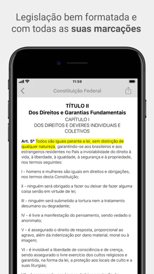 - Textos Bem Formatados: Todos os textos legislativos têm cada um de seus artigos cuidadosamente formatados. Isto resulta em uma experiência de leitura agradável, com textos dispostos de maneira correta e ocupando praticamente todo o espaço útil da tela.