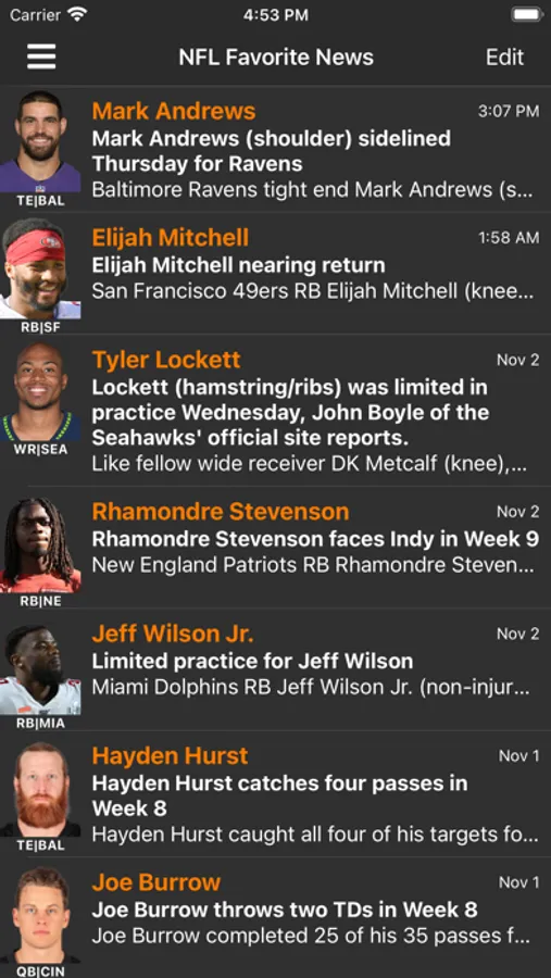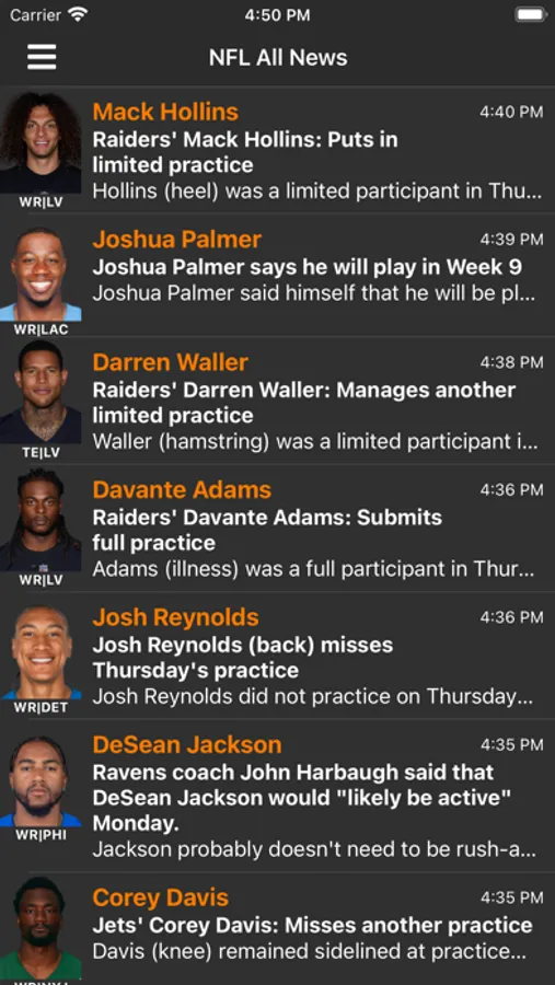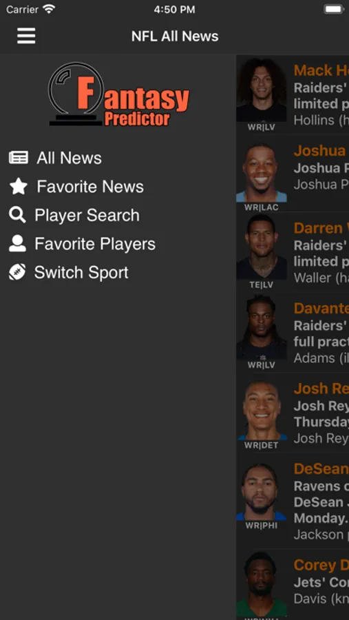 Fantasy Sports player news for NFL, NBA, MLB and NHL, with real-time push notifications.