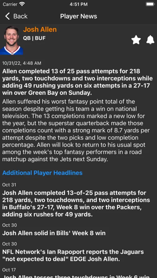 Fantasy Player News Screenshots