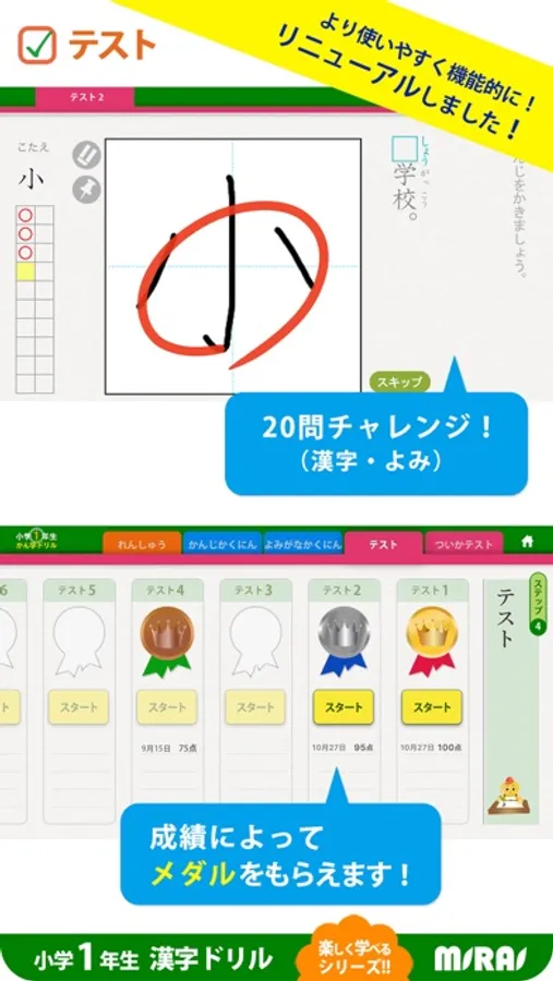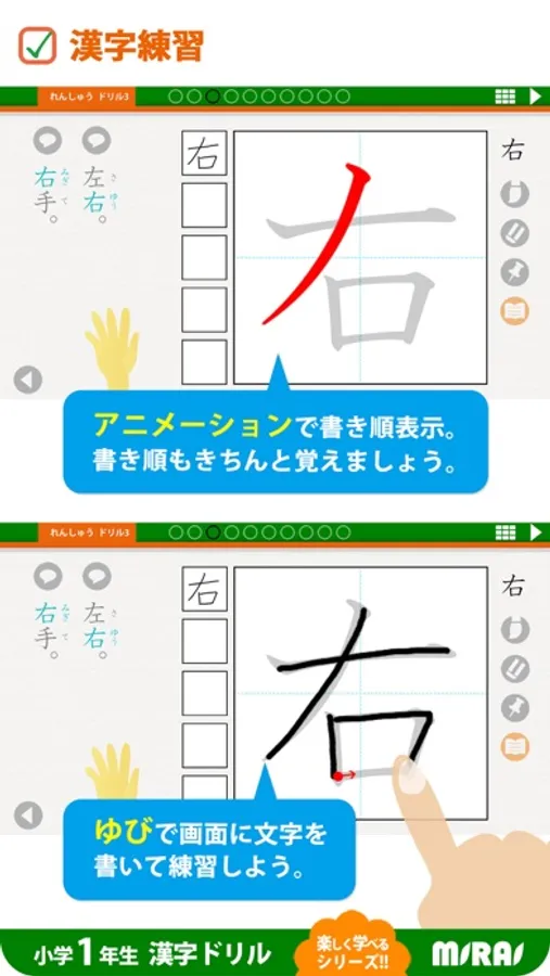 Since its release in 2011, the "Elementary School Kanji Drill" series is a long-selling app that has been used not only by individual users but also by schools and cram schools. This app series supports all 1026 characters that elementary school students learn in 6 years.