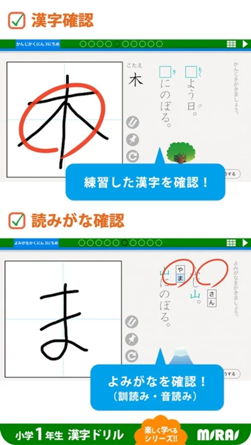 ・ Correctly written kanji characters are marked, so it’s easy to check your progress