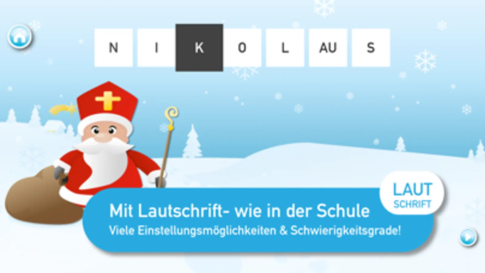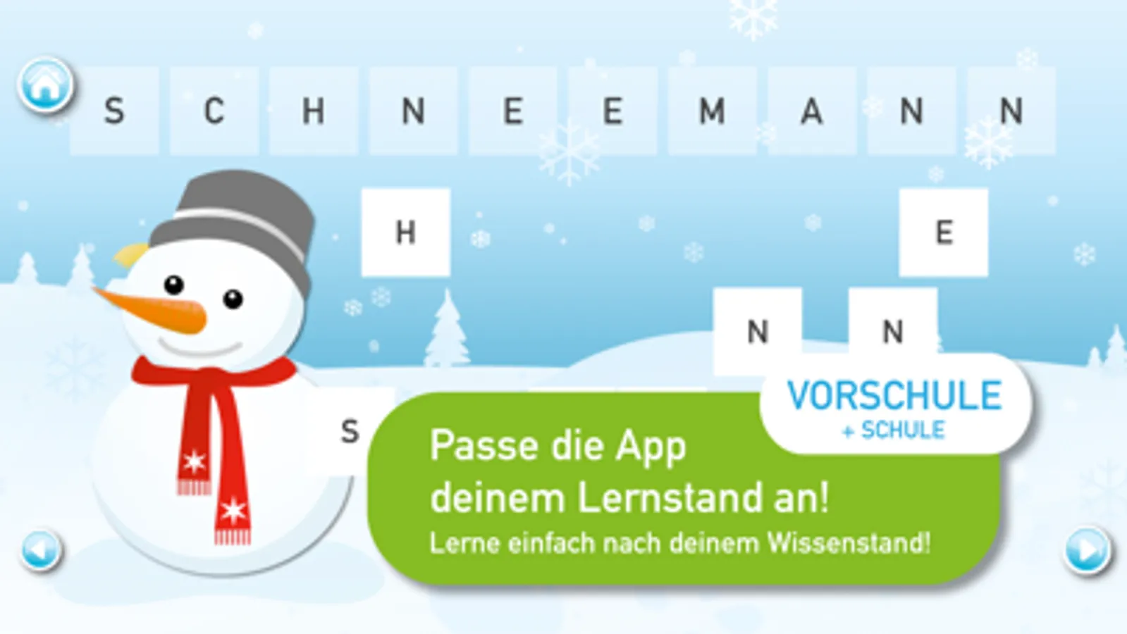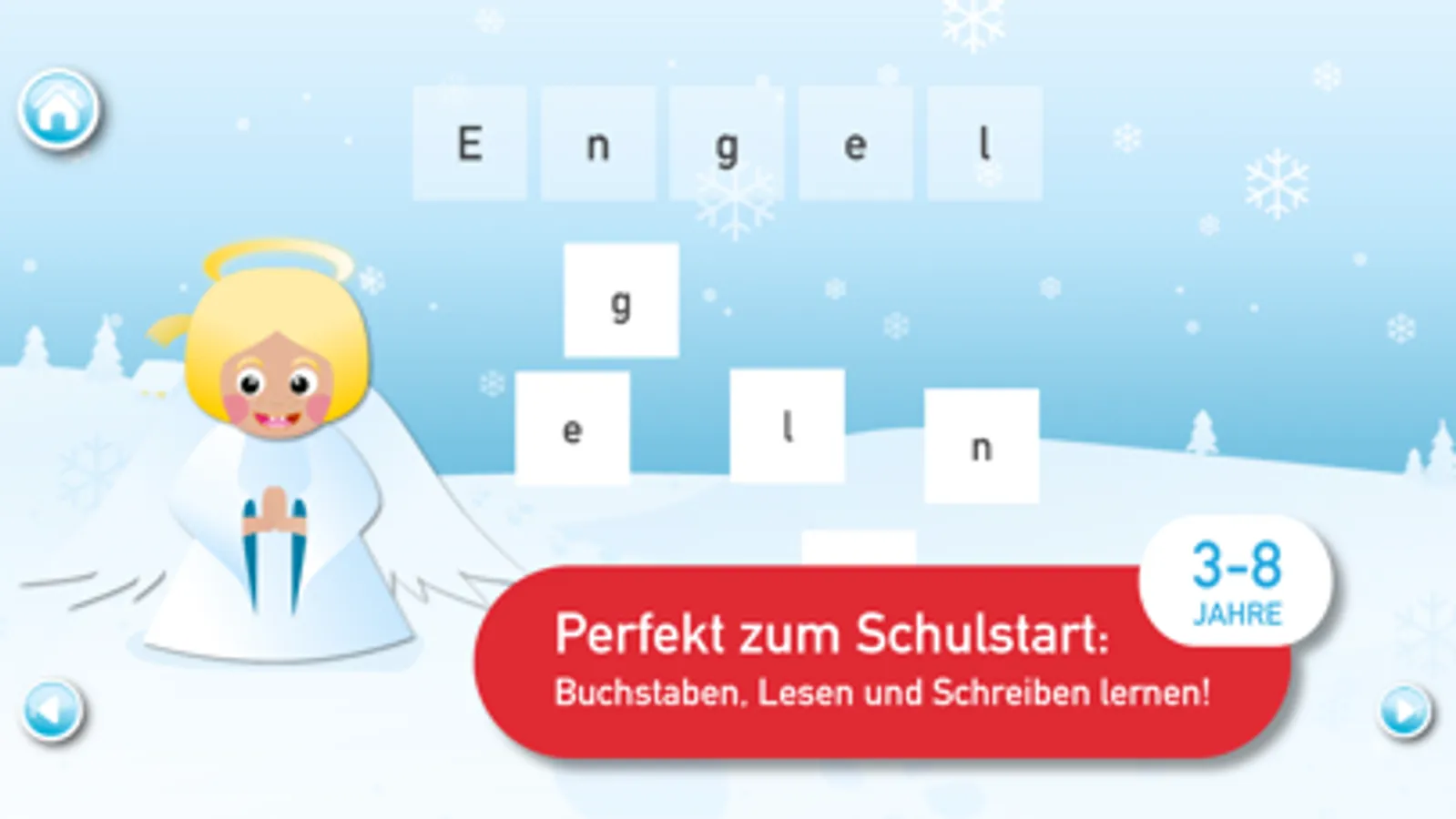 Dein Kind lernt mit der App die korrekte Aussprache und Lautschrift, genau wie in der Schule! Die schönen Grafiken und die vielen motivierenden weihnachtlichen Sounds machen das Game für ganz kleine und ganz große Kinder gleichermaßen spannend und fesselnd und laden zum Lernen und Lachen am Fest der Feste ein.