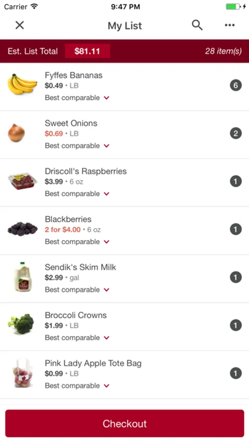 With this app, you can scan products directly from your pantry, shop from our Weekly Ad and use your past orders to quickly select and order your groceries. View information about products before you buy them, including pictures, ingredients and nutrition information.