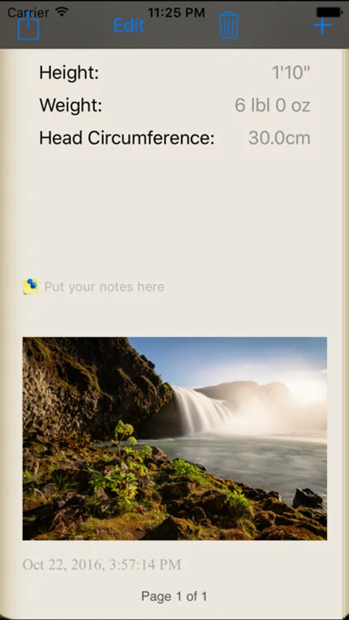 1. Record your baby's height, weight, head circumference at birth.