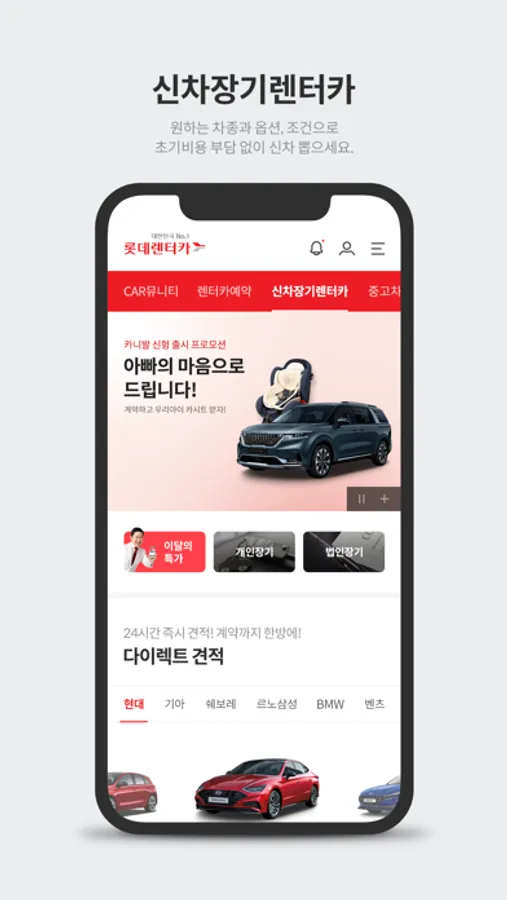 - 신차장기렌터카로 원하는 차종을 초기 부담없이 이용하세요.