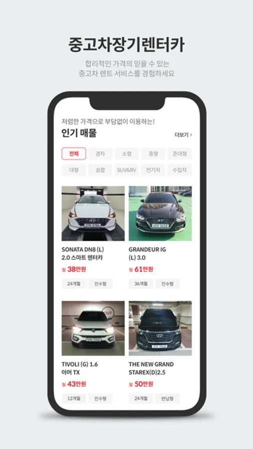- 월단위 렌트, 기사포함 등 다양한 단기 렌트 서비스를 제공합니다.