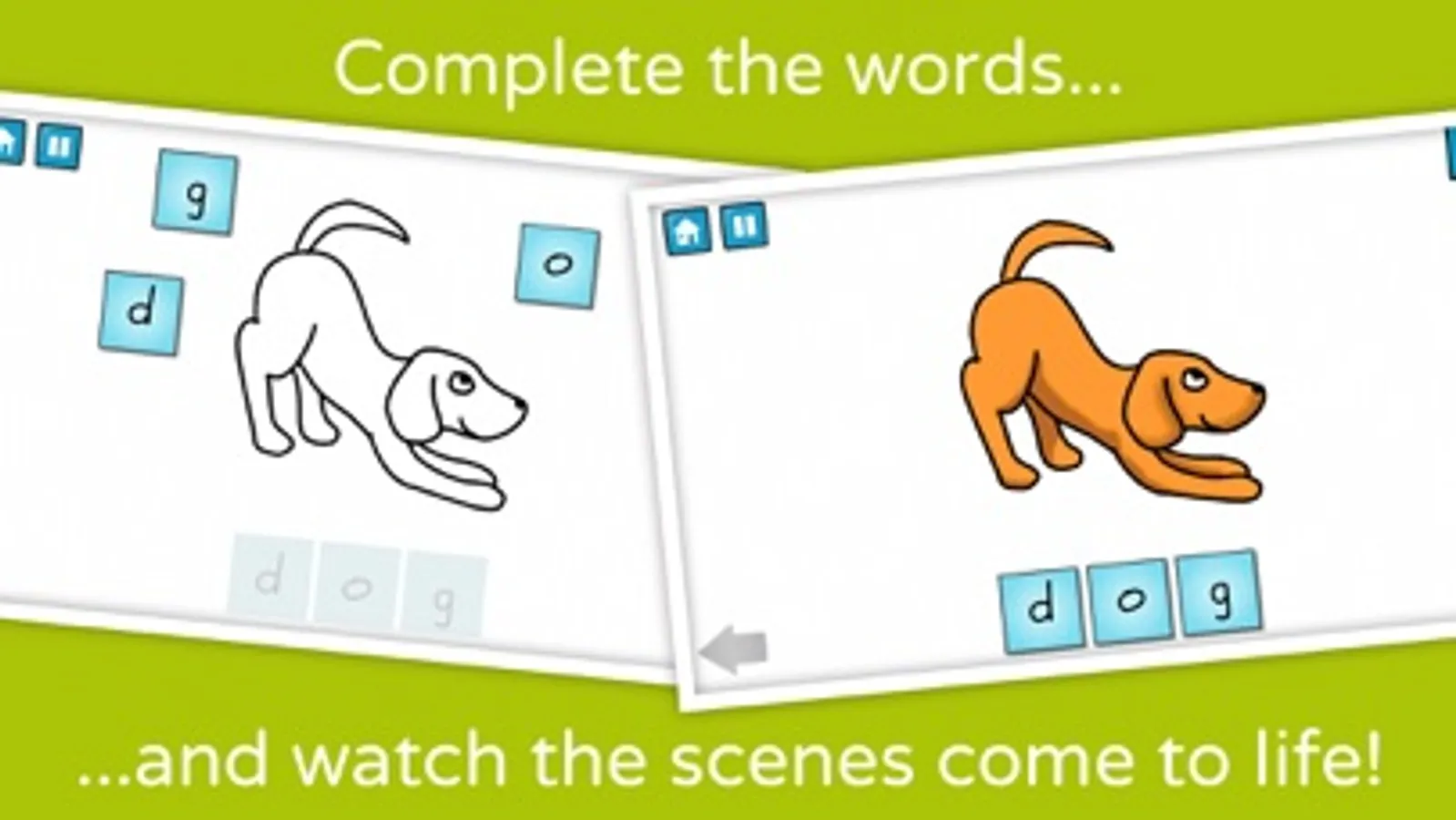The game includes twelve scenes for a total of 32 words. Four game levels provide increasing learn-to-read challenges to children as they play.