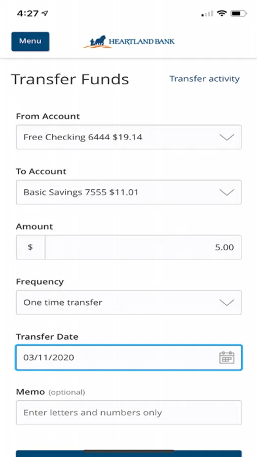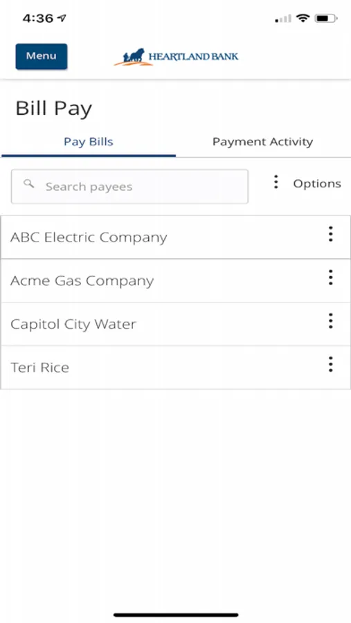 Heartland Bank’s Mobile Banking App is a banking application that allows Heartland’s clients to perform their banking transactions, review their account history and access various financial tools just as they would from their desktop computer. Among other features, clients can pay bills, deposit checks, pay other people, review accounts, check balances and process account transfers.