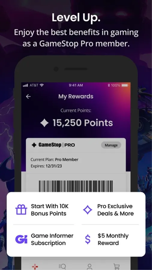Introducing GameStop Pro! Become a GameStop Pro Member to get the greatest of GameStop! Get $70 in value just for joining with a $10 Welcome Reward and $5 Monthly Pro Rewards. Plus, get 2% back in rewards, 5% extra off pre-owned products, collectibles, and more, and 10% extra on trades. Pros also receive a ton of other perks like Pro exclusive deals & drops AND Pro Weeks, plus a subscription to digital Game Informer.