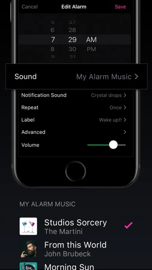 • Unlimited Alarms: Apple Music or Alarm Sounds
