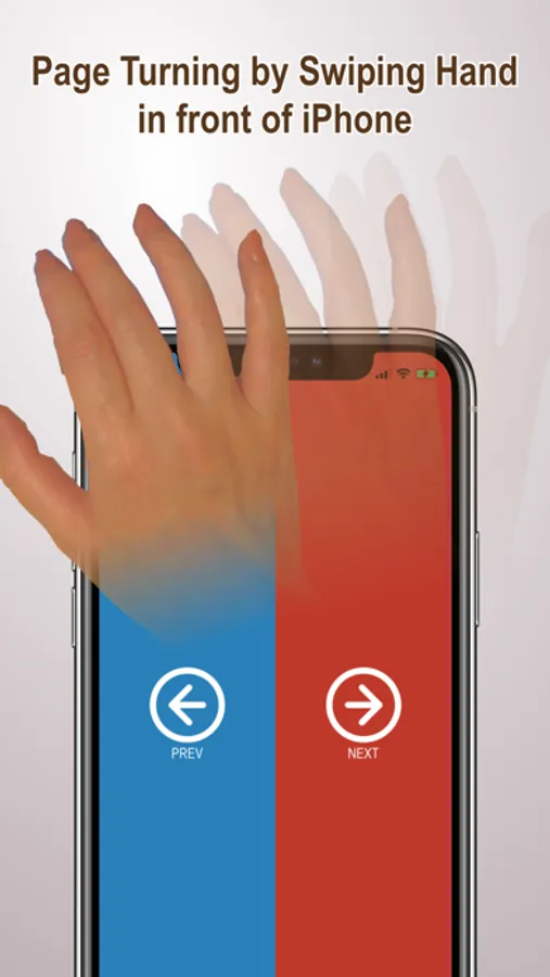 "Air page turning" is very easy page turning. Swipe hand front of iPhone, then the page goes to next (using "proximity sensor" located top of iPhone).