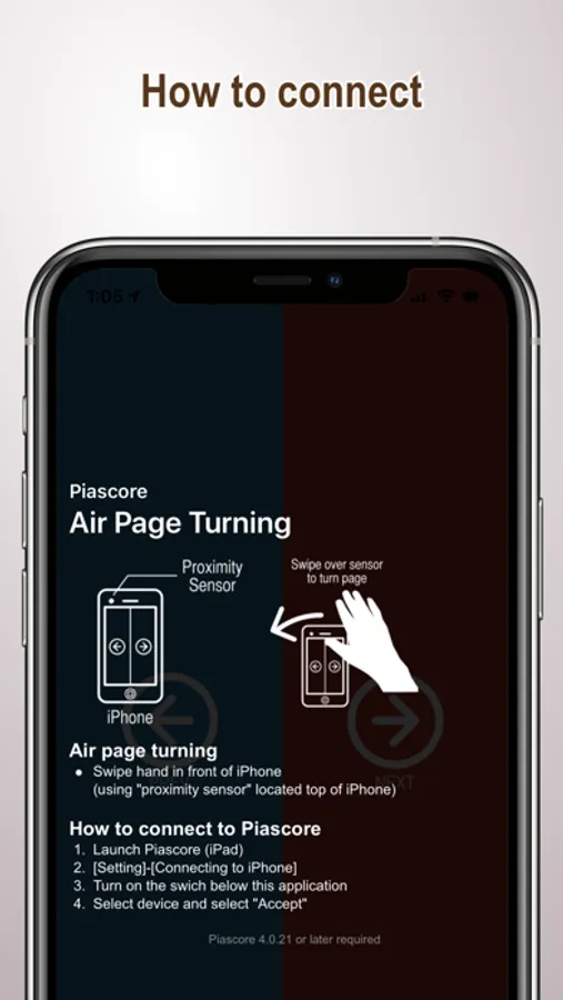 Piascore Air is iPhone remote page turning controller for Piascore (iPad music sheet viewer).
