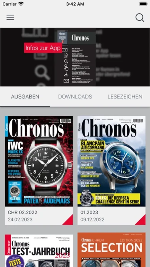 Chronos-Spezialausgaben erscheinen zur Baselworld im März, der Sportuhrenkatalog dann im Juni, im November folgen das Testjahrbuch und die Uhren-Edition im XXL-Format.
