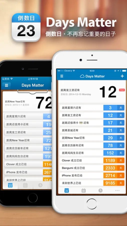 「倒数日 · Days Matter」是一个帮你记录生活中重要日子的小工具,例如:恋人生日还有多少天?还信用卡还有多少天?发工资还有多少天?宝宝出生已经多少天?距离世界末日还有多少天……