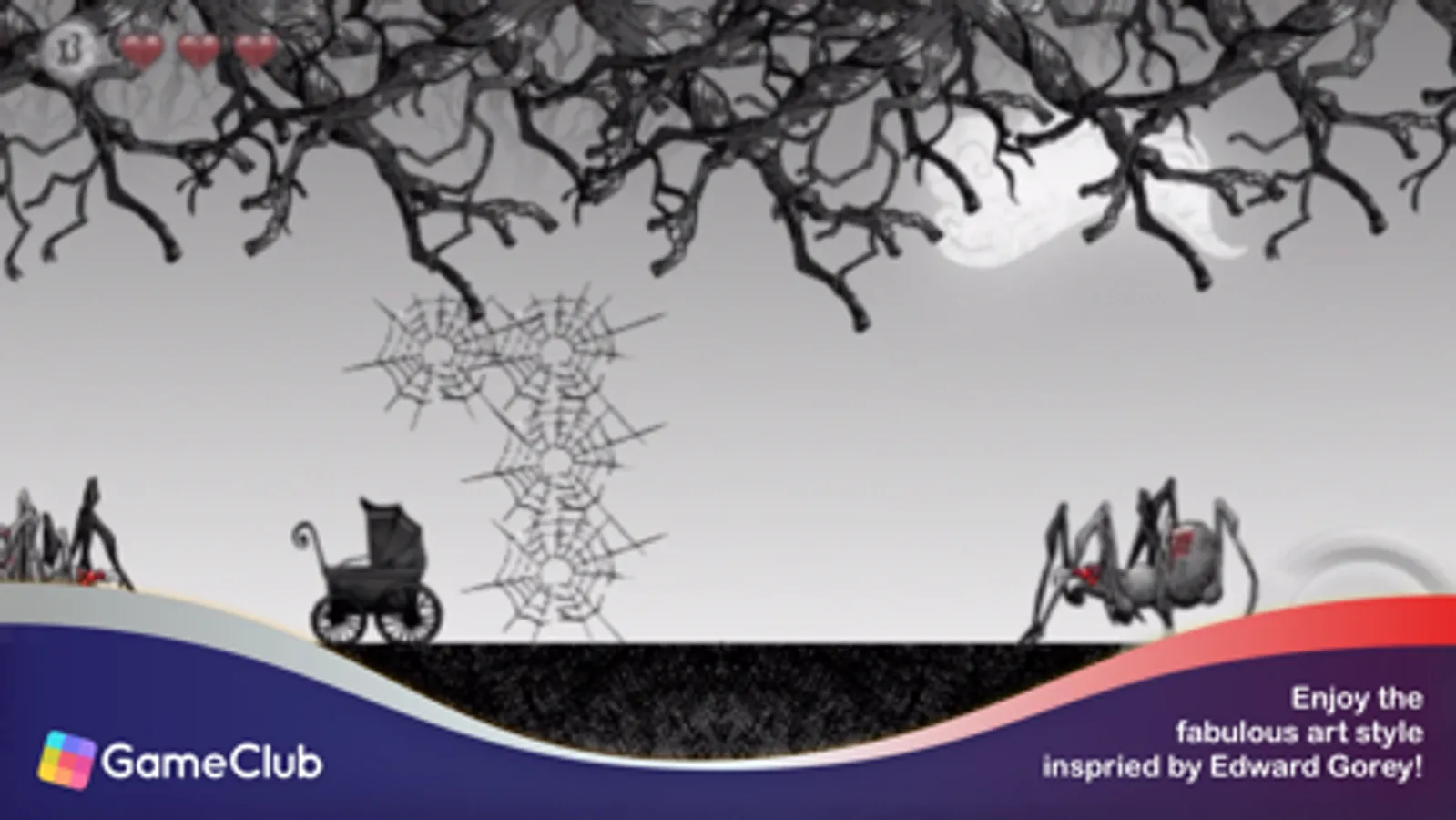 Mother has lost her baby! It is up to you, kindly gamer, to safely navigate the baby's carriage through over 10 worlds of twisted Victorian delights, delivering the lost child home. Avoid the specter of Mr. Grimm, a shadowy figure intent on stopping you at every turn. Grimm: Ride of the Perambulator is a unique side-scrolling adventure set in a dark and stylized world.