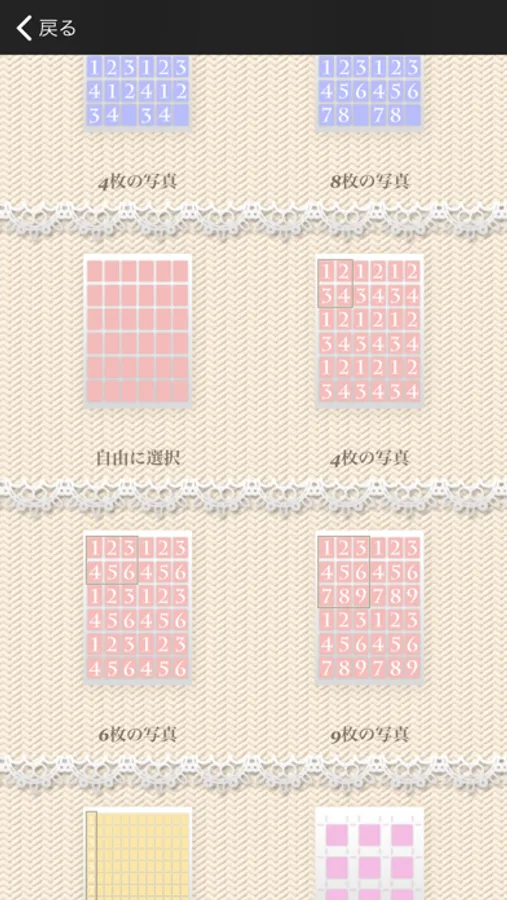 17 templates available, including the one you can arrange the photo size by yourself.