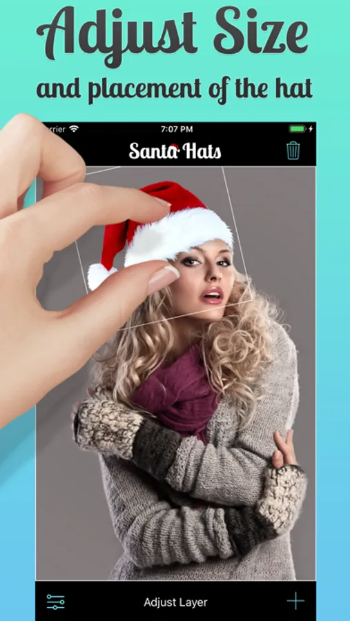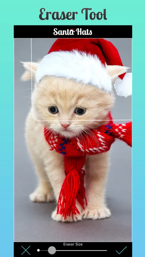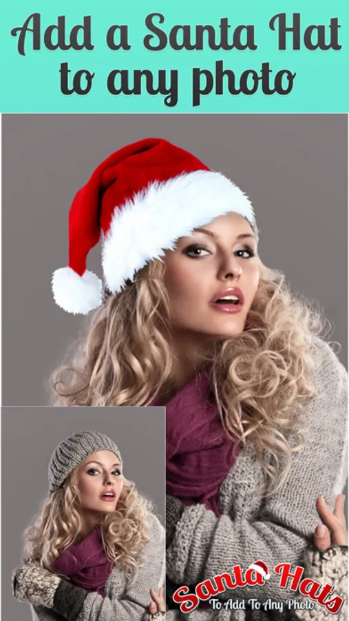 Add Santa hats to any photo with Santa Hats. This app offers over 25 different Santa Hats that can be added to any photo. Now you can easily add Christmas cheer to your photos by adding a Santa hat to each individual in the photo.