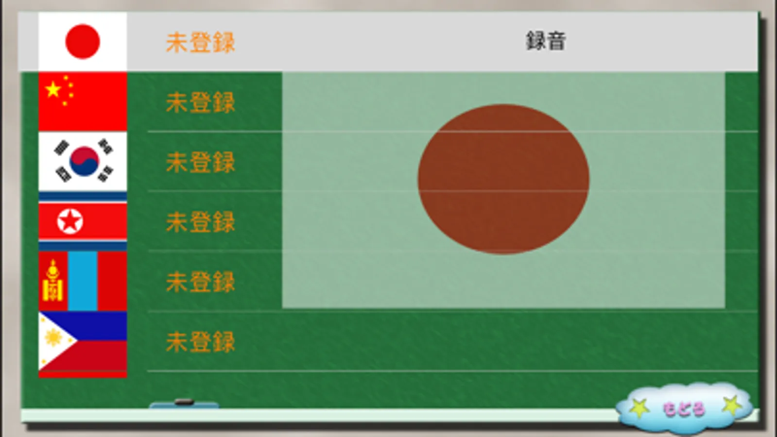 日本語で国旗を覚えるとともに、英語・中国語の学習もできます。