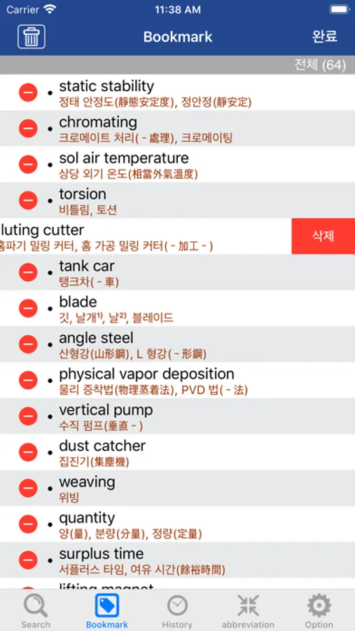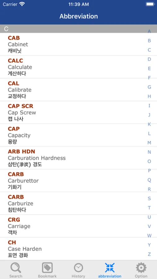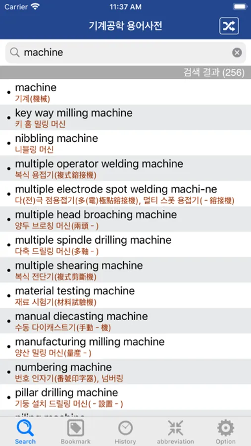 - 실시간 표제어 검색 기능(영어, 한글, 일본어 지원)