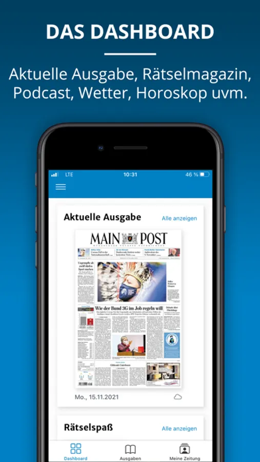 Mit der ePaper-App der Main-Post erhalten Sie Zugriff auf alle Regionalausgaben von Montag bis Samstag. Testen Sie dieses attraktive Angebot jetzt sieben Tage kostenlos!