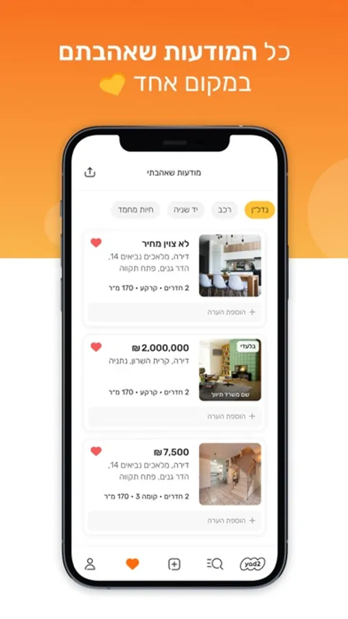 • התראות על חיפושים - תקבלו את המודעות החדשות שעולות ליד2, ישירות באפליקציה