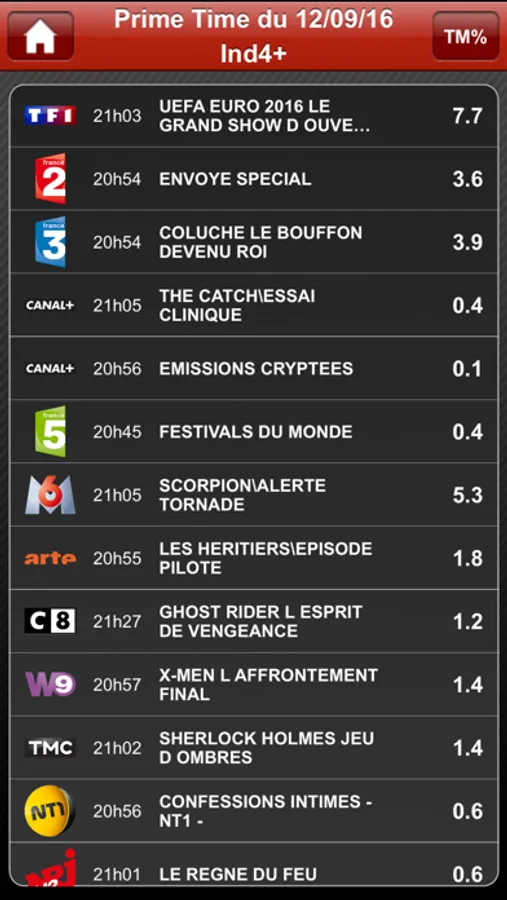 L’application iPhone Médiamat vous permet d’accéder aux résultats d’audience de la télévision chaque jour sur la journée de la veille. Vous avez alors accès aux informations clé : les résultats du prime time mais aussi de l’ensemble des programmes diffusés la veille. Vous visualisez également les résultats Minute à Minute sous forme de courbes d’audience.