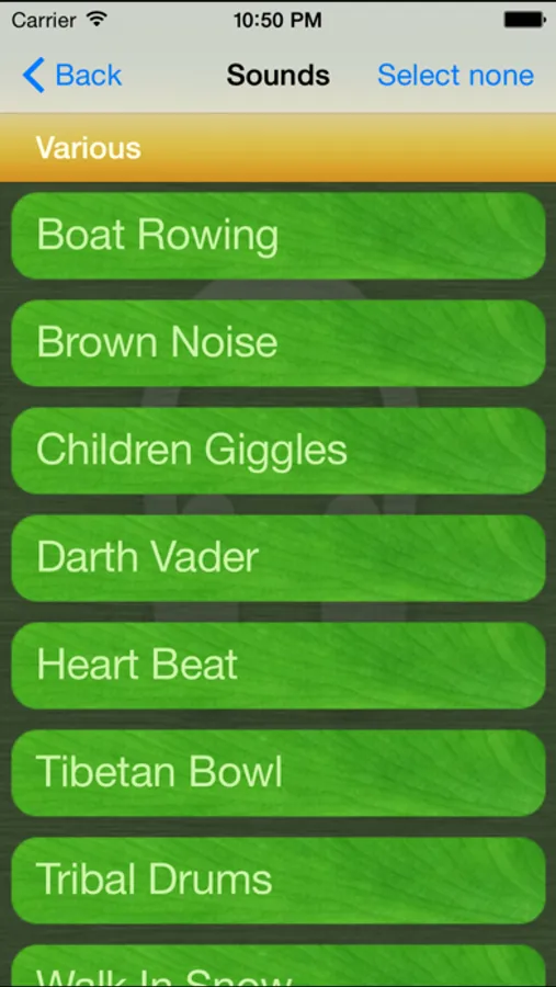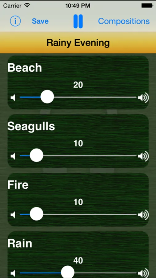 You can listen to these sounds and make compositions of up to four sounds and save these compositions.